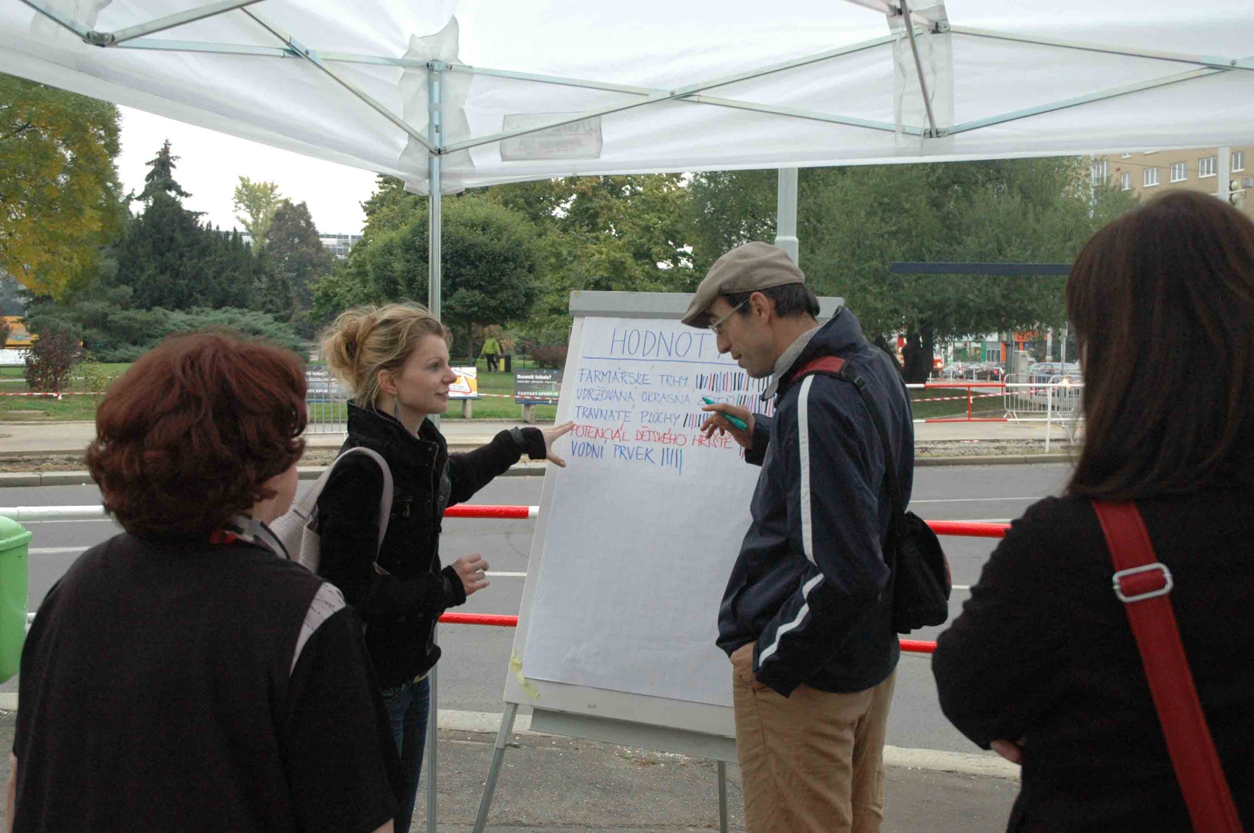 Sběr podnětů na daném prostranství od různých sociálních a demografických skupin obyvatel na téma současných problémů a hodnot, budoucích vítaných aktivit a preferovaného celkového stavu místa.